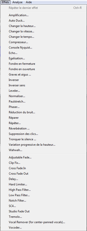 Deuxième étape : Sélectionner l'ensemble de l'enregistrement, revenir sur Effets / Réduction du Bruit et cliquer su OK.