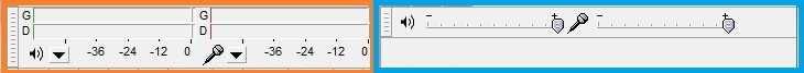 Curseurs de réglage du volume en sortie et en entrée . Il est important de régler au mieux, par essais successifs, le volume d'entrée pour l'enregistrement.